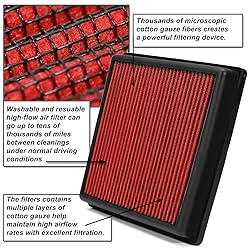 Auto Dynasty High Flow Engine Air Panel Filter Drop-in Reusable & Washable Compatible with 2003-2011 Corolla/Matrix (Red)