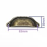 Material: Iron. Color: Bronze. Shell shape drawer pull. Each pull hole center to hole center distance :3-1/4" /8.3cm, total length :3-3/4" /9.6cm. Package includes 10 drawer handles and 20 or more screws. Cabinet furniture wardrobe medical drawer pull handles. Lightweight and nice finish, thin but strudy, great for decoration.