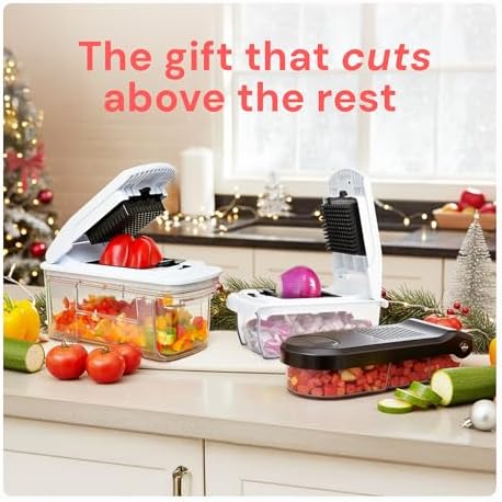 • El Original Pro Chopper - ¡Nuestro estrella picador de verduras está causando sensación en TikTok! Fácil de usar, configurar y limpiar, ahorra tiempo y energía durante la preparación de comidas con nuestro picador de verduras de gran capacidad de 5 tazas. ¡Corte, corte y pique sus ingredientes como un chef experimentado!