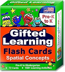 - TestingMom.com Gifted Learning Flash Cards - Spatial Concepts include 72 cards spanning over 160 total activities. Improve your child's:Visual-Spatial ThinkingFigural AnalogiesFigure ClassificationSerial ReasoningPattern MattricesSpatial VisualizationPattern Completion Strengthen Skills for Early Testing Teach children the concepts using a fun education toy that they need to score well on early childhood verbal assessments, including the NNAT Test, CogAT Test, OLSAT Test, NYC Gifted and Talented, WPPSI Test, WISC Test, ERB Test, AABL Test, SAGES, Raven's Matrices, KBIT-2, and more! Hours of Offline Fun Offers you and your child the chance to play and learn together while reducing screen time. Go through the flash cards with your child to learn each concept, then reinforce them throughout the day for lasting learning. Master School Success Included are all the easy-to-hard Non-Verbal concepts Pre-K to K need to master for testing and school success. On the back of each card, you'll find additional questions to ask your child to deepen his or her understanding of each concept. You'll enjoy hundreds of questions for hours of play and learning. Engage your children in learning with these colorful flash cards featuring our signature entertaining characters and create a powerful bond with your child by learning and playing together!