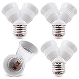 - 4Pcs Socket Outlet Adapter Lamp Bulb Socket Splitter Light Plug Adapter. With this ""Y"" shaped light socket outlet adapter, your room will be filled with great lighting. This 2 in 1 lightbulb plug outlet adapter is horizontally designed, which rotate 360 degree and bend about 180 degree. You can adjust the angle of the led lights adapter at your will. This bulb light adapter have 660W to 240V working voltage, suitable for any E26, E27 standard LED, incandescent and CFL light bulbs that is energy saving and minimize the use of high-wattage incandescent light. You can use any type of bulbs you want with this light outlet plug adapter. This light bulbs adapter socket is perfect for bedroom, living room, kitchen, hallway, conference room, office, workshop and exhibition, indoor workshops, garages or utility rooms. Easy to Install: 1. First, turn off the light fixture and remove the existing bulb. 2. Then screw in the light bulb socket plug adapter 3. Then the 2 light bulbs screw in led bulb holder before turning the light fixture back on. 4. This lightbulb adapters should be used with standard (medium base) bulbs and sockets. 5. No not exceed the electrical ratings of 250VAC and 660W. Specification Material: Plastic. Color: White. Voltage: 110 Volts. Wattage: 60 watts. Package Include: 4 x Twin Bulb Splitter Adapter
