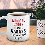 This mug says Medical Coder Because Badass Isn't An Official Title 11 ounce durable ceramic coffee cup Design is featured on both sides Sublimated graphic will not fade or peel from washing Dishwasher and microwave safe