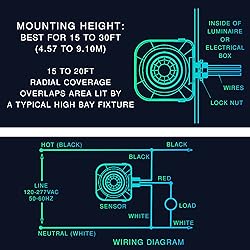 An ideal 360 degree high bay occupancy sensor for high mounted areas like warehouses, manufacturing and other commercial spaces designed to replace standard light or fan switches Featuring latest motion sensor technology, this UL listed ceiling occupancy sensor offers practices in energy-saving, extending lamp life and maximizing time with adjustable controls, time delay and light level Extend lamp life and maximize time and energy savings by programming lights to turn off when no motion is detected in occupancy vacancy motion sensor 360 degree. Taking care of energy saving practices, and convenience with occupancy and vacancy motion sensors Equipped with Passive Infrared Technology PIR, this high-quality motion sensor detects heat-emitting sources, automatically turning lights on and off according to the movement in the area. 120v great for businesses, commercial and industrial properties Adjustable time delay from 15 seconds to 30 minutes and a sensitivity coverage up to 30 feet, this motion sensor light provides an innovative, smart adaptive technology for a larger coverage, perfect for businesses, commercial and industrial properties