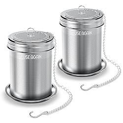 - House Again 2 Pack Tea Infuser, Extra Fine Mesh Tea Infusers for Loose Tea, 18/8 Stainless Steel Tea Strainer with Extended Chain Hook, Tea Steeper for Brew Tea, Spices & Seasonings
