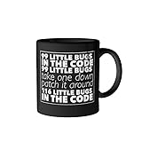 - Limited Edition computer programmer humor design on glossy ceramic mugs.100% Ceramic. Microwave and dishwasher safe. Choice of color combos on black or white glossy mugs. Great for hot or cold drinks. Design appears on both sides of the mug. Many uses - get creative and fill it with candy or other treats to create a gift mug. Great for tea, hot cocoa, coffee and cold drinks. Maybe even a beer, wine or vodka. Mugs are printed to order, please note the current handling & shipping times as you place your order. Raise your glass & toast the frustrations of the DEV life with a "99 little bugs in the code" funny programmer coffee mug. *** Sold & produced by Mom & Dad Gifts. Not associated nor approved by any other entity.
