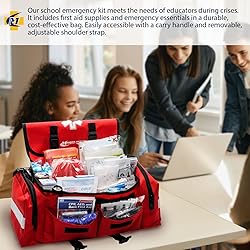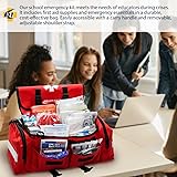 Comprehensive School Emergency Preparedness: The MFASCO Emergency First Aid Bag ensures your school is fully prepared for any unexpected situation. Stocked with over 200 essential first aid supplies, this red trauma bag guarantees comprehensive readiness during emergencies, from minor incidents to critical situations. Assembled in USA. Tailored for School Environments: Specifically designed for schools, this first responder bag is curated to meet the unique needs of educational settings. It includes all necessary first aid supplies and sanitary items, ideal for responding to lockdowns, natural disasters, and everyday accidents. Equipped for Comprehensive Care: Our trauma bags are fully stocked with essential supplies, from basic first aid to advanced trauma care items like gauze rolls, rescue blankets, safety pins, and nitrile gloves, ensuring quick and efficient emergency responses. Convenient & User-Friendly: With dimensions of 10.5 x 7 x 7.5 inches, this red first aid trauma bag features a sturdy handle and adjustable shoulder strap for easy transport during emergencies on school grounds or field trips. All-in-One Emergency Solution: Beyond a medic bag, our trauma kit includes critical supplies like a CPR Resuscitator, folding splint, waterproof flashlight, and cold packs, ensuring complete preparedness for any emergency your school or group may encounter.
