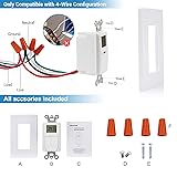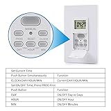 7-DAY & 7 ON/OFF PROGRAMS - This in-wall timer switch has up to 7 on/off programs in a day with a 1-minute interval, every program repeats weekly EASY TO INSTALL & PROGRAM - Neutral wire is required, all accessories are included, wire cap make wiring easier; press the door to turn on/off easily; backup battery keeps settings for 3 months in case of power outage, 4-wire configuration only RANDOM & DST MODE - Turn light on/off randomly within+/- 30 minutes of your chosen time, giving the intruders an occupied impression; DST mode to schedule your time easily ENERGY SAVING & COMPATIBLE - Save costs on electricity, schedule the on/off for your lights, compatible with LED and CFL bulbs SAFE & DURABLE - It is ETL listed, made from ABS,Rated current: 15A, Rating: 1875W, 1000W Tungsten, 500VA Electronic Ballast, 1/2HP, 60Hz 8.3A Ballast