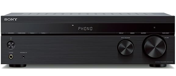 - Made for your record collection. The Stereo Receiver brings together your vinyl and digital music. The perfect match for the PS-HX500 or PS-LX300USB turntables, you can switch effortlessly between analog and digital with simple Bluetooth connectivity and connect to all your equipment. With its low-profile design (5 ¼” tall), the receiver fits easily into any conventional AV cabinet.Bluetooth and Analog Connections: Not only can you connect to the stereo through Bluetooth and play all your favorite tracks, but with Bluetooth Standby, you can turn your receiver on straight from your paired smartphone or tablet. The stereo has four analog audio inputs and one output, for easy connection to your audio recording device and other audio equipment.Exceptional Listening Experience Enjoy the subtlest nuances of studio-quality sound in higher than CD quality with High-Resolution Audio. Sound-matched to PS-HX500 and PS-LX300USB turntables, pair your receiver with either the PS-HX500 or PS-LX300USB to get optimal sound from your vinyl. A discreet amplifier gives the stereo high power and a pure sound, and a reinforced frame and beam chassis design reduces transmitted vibration from speaker sound pressure for more focused, powerful sound.FeaturesEvery component in the stereo has been designed for detail and clarity. Plug your turntable into your receiver via the phono input for appropriate pre-amplification and EQ. The receiver has four analog audio inputs and one output.Bundle Includes:Sony 2 Channel Stereo Receiver with Phono Inputs and Bluetooth Connectivity,SSCS5 3-Way 3-Driver Bookshelf Speaker System (Black),Select Speaker Wire 14AWG with High-Strand CCA and Clear Polarity Marking (50 Feet), andHigh-Quality Gold Plated Speaker Banana Plugs (Open Screw Type, 5 Pairs)
