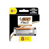 BIC Flex 5 Refillable Razors for Men, Long-Lasting 5 Blade Razors Refills for a Smooth and Comfortable Shave, 8 Razor Cartridges