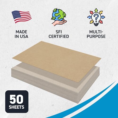 MagicWater Chipboard Sheet for DIY Projects - 11x17 Inch - 50 Pack - 50 pt - Heavy Duty Kraft (0.050 Inch Thick) Paperboard, For Scrapbooking, Books, Picture Frame Backing, Arts Project & Crafts