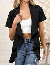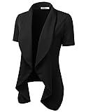 DOUBLJU Casual Draped Ruffles Blazer Short Sleeve Basic Open Front Cardigan Jacket for Womens with Plus Size Work Office Suit