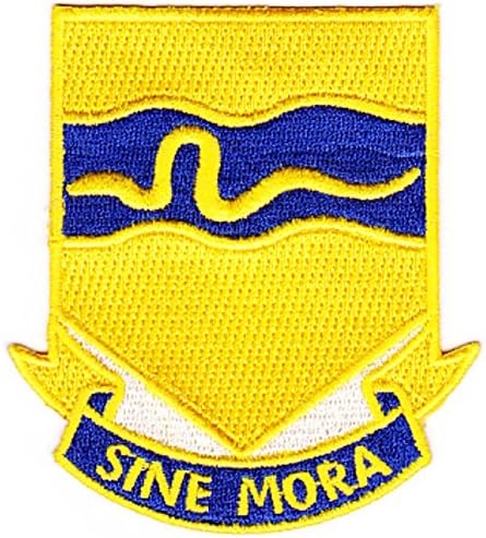 US Army 116th Cavalry Regiment of the Oregon, Idaho National Guard with Snake River Symbol on the patch motto - "SINE MORA" * Height: 3.50 inches, Width: 3.00 inches* Shape: Shield* Edging: Flat Edge* Sew On (plastic backing)