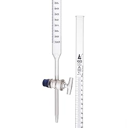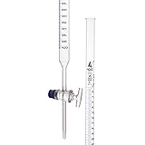 100ML || Burette with 100ml capacity CLASS A || ± 0.10mL tolerance and 0.20mL sub. divisions - Accurate as per class A, DIN ISO 385 Compliant FEATURES || Includes an attached key stopcock made of high quality glass DURABLE & STURDY || Burette is made of precisely bore high quality, heavy duty Borosilicate 3.3 glass - Built to last. Measures 80cm (31.5") in length PREMIUM QUALITY || Features chemical resistant blue printing - All contents are included in a single package