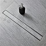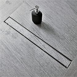 【Linear Shower Drain Size】 The size of linear drain is 24 inches in length and 2.75 inches in width. The diameter of outlet is 2 inches.Shallow 'V' Profile to Aide Flow of Water to Shower Drain Outlet.It can be achieved high displacement with an average of 42.5 L/min (without filter mesh), Enhanced internal slope virtually eliminates water remaining in the channel. 【Material】The linear shower drain is made of high quality AISI 304 stainless steel, the linear shower drain is also made of special production technology to prevent corrosion and rust. With CUPC test certification to ensure product safety and functionality 【Linear Shower Drain Accessories】 Open the Grate from both sides of the linear shower drain by using a lifting hook, the strainer can filter hair and particulate impurities effectively. Adjustable feet support the channel body during installation,can solve the installation problem effectively caused by the unevenness of the ground. Threaded Adapter joints with rubber ring to adjust the height of the drain. 【Tile insert Design】The Linear shower drain is the less visible looking design, you can insert any cutted tile on the top of the grate by yourself, After using for a period of time, open the panel of linear shower drain and take the hair strainer out and clean. It is very easy to clean. 【 Fits US No-Hub coupling】 2" Shower Drain Base can be Purchased Separately: PVC for B06XSQF1VR, B07DNQFBM5; ABS for B07GYQLXVF, not compatible with Schluter Kerdi Shower Kit