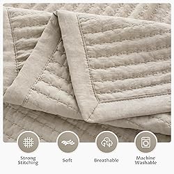 QUEEN SIZE – 90" x 90" QUILT + 2 SHAMS (20" x 26") - This OEKO-TEX Standard 100 certified quilt set includes 1 lightweight, thin quilt and 2 pillow shams. Designed for standard Queen beds, it provides neat, even coverage with a clean drape. This is a lightweight quilt, not an oversized or thick comforter. Please refer to the size chart image for exact measurements. LIGHTWEIGHT & BREATHABLE – THIN 135GSM FILL - Made from pre-washed, shrink-resistant 100% microfiber with a thin 135GSM down-alternative fill, this quilt is designed to feel lightweight and breathable, not heavy or bulky. Ideal for warm sleepers, spring and summer use, or layering. MINIMALIST SCANDINAVIAN STYLE - Features a stone-washed texture and clean quilting lines inspired by Nordic minimalism. Neutral tones blend easily with farmhouse, bohemian, or modern bedrooms. Lifestyle images are for styling reference only; actual thickness is lightweight and thin. PET-HAIR RESISTANT & EASY CARE - Specially treated fabric helps reduce pet hair, lint, and static. Machine washable and tumble dry low. The lightweight construction allows quick washing and drying with minimal maintenance. DURABLE 3-LAYER QUILT STRUCTURE - Constructed with stable 3-layer quilting to keep the lightweight fill evenly distributed without shifting or clumping. Designed to maintain a thin, breathable profile over time. Backed by a 2-year warranty.