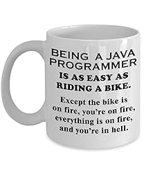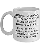 Funny Java Programmer Coffee Mug - Easy As Riding A Bike On Fire - Website Developer Cute Gag Gifts Ceramic Tea Cup Front End Script HTML Web Computer Software Engineer
