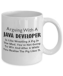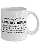 Java Script Developer Funny Gifts - Web Development Ceramic Coffee Mug Tea Cup Website Front End HTML Web Inspirational Computer Software Engineer Cute Gag - Arguing With Like Wrestling Pig In Mud