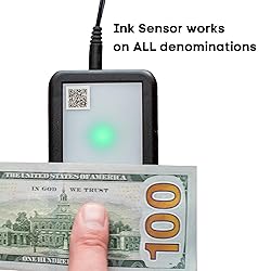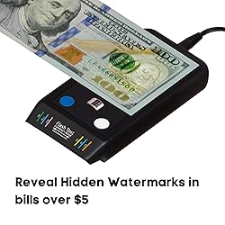 - SEARCHING FOR THE BEST COUNTERFEIT BILL DETECTOR? Easy to use! Simply glide the bill over the sensor, the device beeps and flashes a green light to let you know the money is authentic! Most cutting edge technology to prevent taking bad bills. Flash Test™ is patent pending for it’s cutting edge triple robust security tests, its small size does not take up much space. So convenient to place nearly anywhere cash payments are accepted. Simply the best fake money detector on the market. STOP HOLDING BILLS TO THE LIGHT - NO MORE COUNTERFEIT PEN CHECKER ! Scanners and light boxes need maintenance, programming, and expensive bulb replacement. Counterfeit pens dry out or get lost. STOP USING BULKY OLD-FASHIONED BILL CHECKERS This is better than a money marker counterfeit pen which get easily lost and need to be replaced. Our device does not even need batteries! It plugs in with an AC charger. Prevent loss due to money fraud. WATERMARK, UV, AND INK TESTS FOR THE ULTIMATE FAKE BILL DETECTION Ink Test: While the device is packed with 3 different methods of determining a bills authenticity, most opt for the ink test, as it only takes a ‘flash’ to test a bill. Simply slide the bill over the sensor and when you hear a beep and see the flashing green light, you know the dollar bill is authentic. Watermark Test: This test works on currency that is $5 and up. Press the white button to illuminate the platter and place the bill on top. This will reveal the watermarks that are embedded in U.S. paper currency. The watermark test can also show the security strip on all bills. UV Light Test: Underneath the front of the device, there is an ultraviolet (UV) light in which will illuminate the security strips that are in U.S. currency. Simply press the blue button and use the little guide on top to locate the strip.