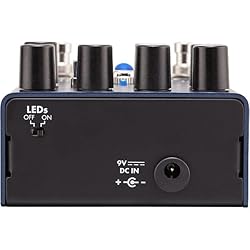 High-gain distortion effect pedal Onboard 3-band EQ with a low-pass filter; texture and bite switches Up to 12dB switchable boost Led-backlit knobs; Fender amp Jewel LED Magnetically latched hinged 9V battery door