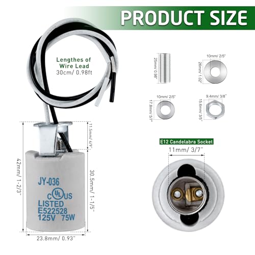 E12 Socket,Ceramic Candelabra Socket E12 Bulb Lamp Holder,Light Socket with Wire Lead for E12 Incandescent LED Light Bulb (4-Pack)