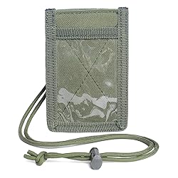 Made of 1000D nylon. Light weight and durable. Detachable hook & loop back part with a clear window for main ID card & wallet like micro-mesh card holder x 3 in the back (fit 2 credit cards each). Two pieces of holders can be used separately. Adjustable lanyard can be used in emergencies. Tactical ID card size: 5.1" L * 3.3" W (13 * 8.5 cm). Light, solid, easy-access edc wallet and elastic pen holder. Designed to be worn both horizontally and vertically.