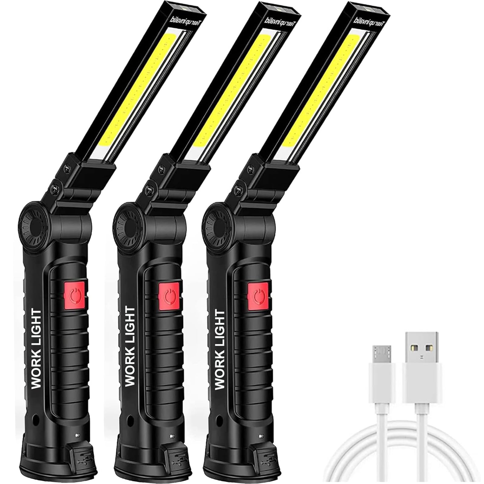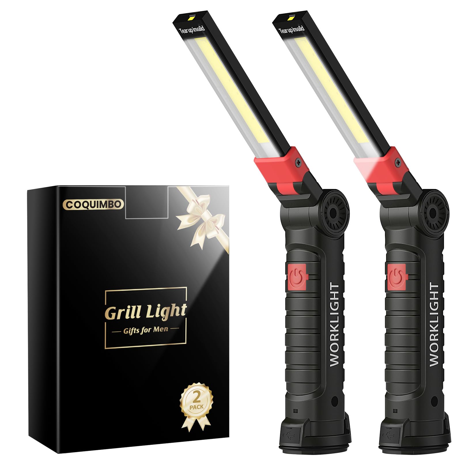 Regalos de Herramientas Coquimbo para Hombres Papá Él Marido, Luz de Trabajo LED Recargable Accesorios para Barbacoa a Gas con Base Magnética, Luz de Mechero Giratoria de 360° para Reparación de Coches Camping (2 Unidades Negras)