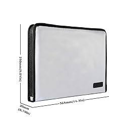 DOUBLE LAYERS PROTECTION: Our newly designed file folder uses different materials than other folder.Double Layered design, high quality Black Non-itchy Liquid Silicone Coated Fireproof Fiberglass which can withstand temperatures as high as 1832℉,this bag is FIRE and WATER RESISTANT.Fireproof file folders can fully protect your important documents, paper,birth certificate, passport. SIZE: 14.3" x 9.8" (Easily expand to 1.18inches) , Weight:400g/14ounce,Holds up to 600 sheets; 13 individual pockets. Fireproof file folder makes it suitable for daily filing and storing of documents(with Color Labels); perfect for both A4 size and letter size. WIDE RANGE OF APPLICATIONS: Fireproof zipper added security and safe transport.It's very durable.Not only can you put your file folder at home, office, car,it's also a good decision to put it in the safe box. You can feel 100% confident that your important information is in a safe place. Original Intention: Accidents happen when we least expect, and there’s nothing more devastating than a fire that takes away valuable paperwork, personal information, pictures or achievements.That’s why we developed the fireproof document bag- Protect your financials, personal information,document notebook, that won’t let you down when emergency strikes. CUSTOMER SERVICE: ENGPOW provide friendly after-sale service and no risk refund for our customers. If you have any issue,please contact us and we will try out best to solve your issue!