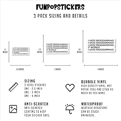 - Show off your love for coding and technology with our I Love Programming Sticker Pack! This 3-pack includes (1) 2.5-inch, (1) 3-inch, and (1) 4-inch vinyl stickers, perfect for programmers, developers, software engineers, and tech enthusiasts. Whether you're writing code, debugging, or creating the next big app, these stickers let you express your passion for all things programming in a fun and creative way. Crafted from high-quality, waterproof vinyl, these durable, fade-resistant, and scratch-proof stickers are built to last. They’re perfect for laptops, water bottles, phone cases, tablets, notebooks, car windows, gaming consoles, and more. The strong adhesive ensures they stay in place while allowing for easy removal and repositioning without sticky residue. Whether you're a beginner learning to code or a seasoned developer, these stickers make a great addition to your workspace or a thoughtful gift for any tech lover. At FunPopStickers, we specialize in unique, high-quality vinyl stickers designed for any occasion. With a catalog of over 2,500 designs, you’ll find something for every interest. Upgrade your gear with the I Love Programming Sticker Pack and let the world know that coding is more than a job—it’s a passion!