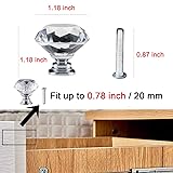 - Specification: Material: Crystal glass and aluminum alloy Crystal diameter: Approx 1.18inch (30mm) Base diameter: 0.7inch (18mm) Total height: Approx 1.18inch (30mm) Shape: diamond shaped Screws size: 4*22mm Easy Installation: Find the position where you want to install on the board and drill a hole. Then pass through the screw from the back of board and thread tight to the knob. Application: The crystal knob is very pretty artistic and durable, Ideal for cabinet, dresser, drawers, cupboards, wardrobes, bookcase in your home, kitchen, bathroom, living-room, book-room, dorm and office. Best for decoration. Package Includes: 12 * Crystal knobs 12 * Screws