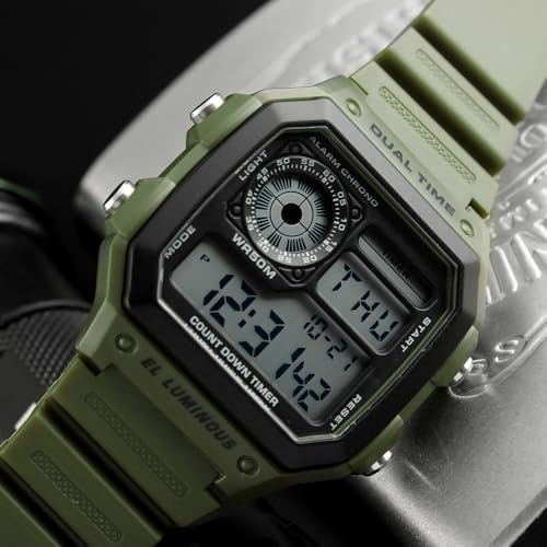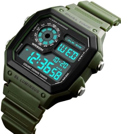 Relojes digitales multifuncionales para hombre PASOY con doble hora, alarma, cronómetro, cuenta regresiva, retroiluminación y resistente al agua