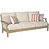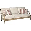 Signature Design by Ashley Clare View Outdoor Patio Sofa, 4 Throw Pillows, Nuvella Weather Resistant Fabric, Eucalyptus Wood, 81" W x 35" D x 32" H, Beige