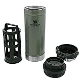 Stanley Taza de Viaje con Prensa Frances Integrada 16 oz | 5 Minutos de Preparación, 4 Horas Caliente, Tapa a Prueba de Fugas | Filtro de Malla para Posos de Café | Fabricante de Café Aislado en Acero Inoxidable | Libre de BPA | Verde Tono Martillo