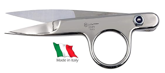 ✂ TOUGH : Built from solid hot-forged steel. Made in Italy. :✂ DURABLE : Fully nickel plated for corrosion resistance. ✂ SMOOTH : Durable "memory steel" spring and caged ball bearing provides smooth cutting with minimal effort or hand strain. ✂ VERSATILE : Designed to cut everything from light threads and fabrics, to heavier yarns and thicker fabrics. ✂ DIMENSIONS : 4.5" x 1.75" with a cutting depth of 1.25"
