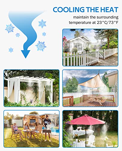 • Cooling the Heat: The misting system is perfect to cool down your outdoor area in the summer! It produces water mist, which absorbs the heat from the surrounding area and provides a cooling effect, maintaining the temperature at a comfortable 23°C/73°F
