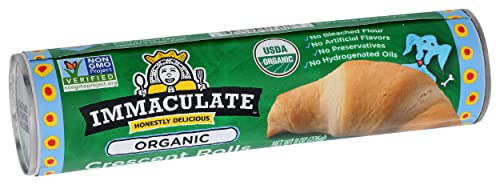 Immaculate crescent roll, ready-to-bake is honestly delicious. This product makes baking crescent rolls a quick and easy experience and makes eight. Immaculate crescent roll, ready-to-bake does not contain artificial flavors, preservatives or hydrogenated oils. This product is certified USDA organic and contains 8 ounce of immaculate crescent roll.