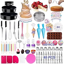 - Package Included: 1 x 10.5 Inch Cake Stand 1 x Cake Leveller 1 x Straight Spatula 1 x Angled Spatula 1 x Cake Server1 x Flour Siev1 x Egg Separator1 x Cake knife 1 x Cake Smoother 1 x Reusable Cake Board 1 x Chocolate Mold 1 x Flower Nail 1 x Flower Lifter 1 x Cleaning Brush 1 x Pattern Chart 1 x Egg Beaters 2 x Ciong Coupers 2 x Silicone Bags 2 x Russian Tricoupers 3 x Scrapper 3 x Leakproof Round Cake Pans 7 x Russian tips 6 x Silicone Cupcake Molds 8 x Happy Birthday Flags 9 x Cream Carved Pens 48 x Numbered Icing tips 100 x Disposable Bags100 x Cupcakes 60 x Baking Papers 50 x Muffin Cups 50 Little Flags cake stand cake decorating supplies kit cake pan baking supplies piping bags and tips set cake decorating kit baking set cake turntable cake decorations piping tips heart cake pan 6 inch cake pans cake cutter edible cake decorations frosting piping kit cake decorating icing bags and tips set cake pans sets for baking baking supplies and equipment icing bags spring form pans for baking cake scraper smoother bakery supplies baking tools cake decorating turntable cake decorating tips cake leveler & slicer cake supplies cake baking supplies cookie cake decorating supplies cake decorating tools cake decorating cake decoration cake tools cookie tools cake turntable christmas cookie decorating kit cake decorating classes near me cake decorating turntable cookie decorating kit [Ideal Gift for Baker and Women ] – Ideal present for Birthday, Anniversary and Easter for girls and women, girlfriend, wife and mom, mother. You will get a complete cake decorating tools with cake stand to make any cakes as a cake making starter and professional for home and kitchen.Sculpting & Modeling Tools Dessert & Candy Sculpting Tools