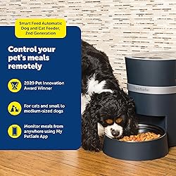 SMART FEEDER: Revolutionize your pet feeding routine with this cat and dog smart feeder, a smart device that ensures timely meals for your pet. Even when you're away, this smart feeder frees up your time for other important tasks. You can also ask your Amazon device to feed your pet a snack, from anywhere in your home; best for cats and small to medium sized dogs REMOTE MONITORING: With the automatic dog feeder, you can monitor your pet's meals from anywhere using the My PetSafe app (requires an iPhone or iPod device iOS 12.0 or later or a compatible Android smartphone 9.0 or later). This automatic pet feeder allows you to adjust meal sizes and receive notifications when the feeder is running low. HEALTH BENEFITS: Promote your pet's health with the smart feeder's Slow Feed setting. This smart pet feeder dispenses meals larger than 1/8 cup in small amounts over 15 minutes, preventing choking and other health issues related to fast eating. FLEXIBLE PORTIONS: Schedule up to 12 meals daily that can be dispensed from 1/8 cup to 4 cups to fit your pet's needs; If you need to temporarily stop the feeder from dispensing you can turn off the schedule in the app EASY MAINTENANCE: Lid, hopper, bowl and bowl holder are top-rack dishwasher-safe. Cleaning is a breeze, making this automatic pet feeder a must-have for every pet owner. CUSTOMER CARE: Rely on our U.S.-based customer care team who are always ready to assist you with any queries or concerns. Our pet product experts are available via phone, email, or chat, ensuring you receive the help you need when you need it. QUALITY PROMISE: PetSafe brand has been a trusted global leader in pet behavior, containment and lifestyle innovations since 1998 to help keep your pet healthy, safe and happy.