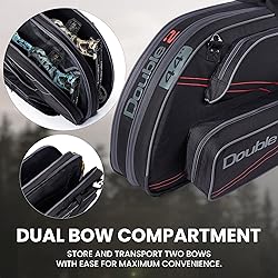 RUGGED PROTECTION FOR YOUR BOW: Built with rip-resistant nylon, reinforced stitching, and shock-absorbing padding, this bow case for compound bow shields your gear from the toughest conditions. These bow cases is a must have for every archer and hunter TWO BOWS, ONE SECURE CASE: No more choosing between bows—carry both safely in archery bow case dual compartments. A bottom pocket fits an MTM Compact arrow case (not included), while mesh and zippered pockets keep tools and accessories neatly organized. TOTAL SAFETY, ZERO WORRIES: Thick foam padding absorbs impact, while a soft tricot lining of our compound bow bag prevents scratches. Six adjustable straps keep your bows locked in place, and two padded pockets offer extra security for your bow cams. CARRY WITH EASE, ADVENTURE WITH CONFIDENCE: Travel effortlessly with a neoprene handle and an adjustable padded shoulder strap. Whether heading to the range or trekking deep into the wild, this soft bow case makes transporting your gear a breeze. A PERFECT FIT FOR PEACE OF MIND: Exterior size of this compound bow soft case: 45.5” x 17.5” x 8”. Interior compartments: 44” x 15.5” x 3”. Bottom pocket: 37” long. Check your bow’s size before ordering to ensure the perfect fit for worry-free travel.