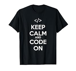 Keep Calm And Code On programming coding computer programmers coder program saying quote cool funny birthday gift idea Ideal awesome Programmer present for mom dad aunt uncle brother sister grandma grandpa friends or colleagues on christmas thanksgiving halloween anniversary holidays. Lightweight, Classic fit, Double-needle sleeve and bottom hem