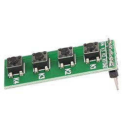 2.54MM PIN OUT---The 4 key keyboard module is of GND K1 K2 K3 K4" 4 PIN OUT 2.54mm SUITABLE FOR---The delay relay module is suitable for auto modification, motor control, bulb, LED light string, micro pump, solenoid valve 4-BUTTON KEY MODULE---This is a 4-button common cathode key module(When pressed output low level) MAIN USAGE---The 4 key keyboard module can be inserted directly into due,Ideal for linking up to your Breadboard banana pi etc,or others MCU PLD CPU ( AVR STM32 ARM PIC C51 NRF24LE1 CC2530 MSP430 STM8 FPGA CPLD etc.) DURABILITY ENSURING---Adopting electronic components, and preciseness process, the 4 key keyboard module is of long serving time, with good durability