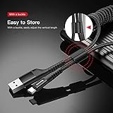 - USB C Cable for Car(3FT), Baseus Retractable USB C to USB 2.0 A Cable, Coiled Type C Data & Charging Cable Compatible Samsung S10 S9 S8 Plus Note 9 8, Moto Z, LG5/G6/V20, and Other Type C Devices Features: Novel Coiled Design Rational length of the spring wire can facilitate charging at the copilot or backseat, free from knotting or twining. Fast Charging and Data Sync 2 in 1 Data transfer speeds up to 480Mb/s, charging speed up to 2A, allow you to charge and sync at the same time. Durable & Premium Quality Encased with high-quality nylon braided cord, which supports strong and durable, longer life. Strong Bending Resistance Special Strain Relief Support design, can bear 10000 bending test, no fear of bending and will not break. Aluminum Shell Connectors The high-end aluminum alloy plug shell is antioxidant and corrosion resistant. Exquisite Stepped Design Perfect for most mobile phone shell ports, and charging and transmission are not affected with such shells. Super Compatibility Compatible with Samsung Galaxy S9/Note 9/Note 8/S8/S8+, Razer Phone, Google Pixel 2/Pixel/Nexus 5X/Nexus 6P, and all USB C compatible phones and tablets. Specification: Material: Aluminum shell + nylon spring braided wire Colour: Black/Red Current:2A Storage size: 0.75ft/23cm Unfolding size: 1.57ft/48cm Bending length: 1.31ft/40cm Extension length: 3.3ft/100cm Transmission speed: 480Mbps Suitable for: Type-C interface devices Package Includes: 1 * USB Type C Cable for Car