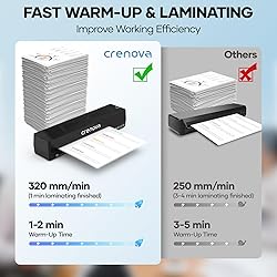 - 🆗Fast Warm-up, Vivid Color:Crenove laminating machine only takes 1-2 minutes to preheat. It compatible with 2 x 80-125mic laminating pouches. Crenova preserves your precious photos' colors, keeping memories alive.