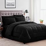 Queen Comforter Set de 8 Piezas en Bolsa con Protector de Cama, Sábana Ajustada, Sábana Plana, 2 Fundas de Almohada, 2 Fundas de Cojín, Talla Queen, Dobby Negro