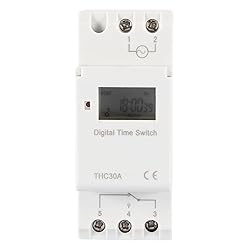 - Specification: Working voltage: AC-DC 12/24/110/220V (Optional) Switching capacity: 30A Number of settings: 16 times ON and OFF(day/week) Setting time: 1 minute - 168 hours Time-keeping error: 1s/24h Power-off memory: 180 days or more Battery: Built-in 1.2V 40mA rechargeable battery Mounting method: Screw mounting or rail mounting Dimensions: 86*36*66mm / 3.4*1.4*2.6 Weight: Approx. 145g/5.1oz Package List: 1 * Digital Timer Switch