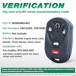 Beefunny Replacement Remote Start Keyless Entry Car Key Shell Case Housing Fob 4+1 Button for Cadillac STS 2005-2007 - M3N65981403 (1)