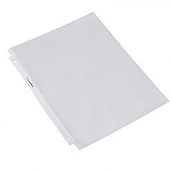 100-pack of sheet protectors for organizing, storing, and protecting 8.5-by-11-inch sheets of paper Made of heavy-duty PVC-free polypropylene (.08 mm thick); non-glare finish for transparent visibility and a professional appearance Top loading for easy insert and removal; ideal for project info, work proposals, school reports, and more Pre-punched holes down the side; easily fits any standard 3-ring binder (no need to punch holes in the paper inserts) Measures 9.84 by 11.5 by 1.6 inches; backed by an Amazon Basics 1-year limited warranty