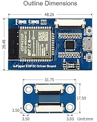 - Overview This is a universal driver board for e-Paper raw panels, thanks to the dual wireless features - WiFi & Bluetooth - it is easy to display images from PC / smart phone via WiFi or Bluetooth. Furthermore, it can also be used for Arduino development, just like any other normal Arduino board. Features Onboard ESP32, supports Arduino development Provides Arduino APP, allows to refresh display content via Bluetooth EDR Provides HTML host code, allows to refresh display content via remote webpage, suit for Internet applications Supports Floyd-Steinberg dithering algorithm, more color combinations, better shadow rendering for the original image Supports popular image formats: BMP, JPEG, GIF, PNG, etc. Easy to be integrated into wireless applications Comes with e-Paper driver (open source) Comes with development resources and manual Specifications WiFi protocol: 802.11b/g/n Bluetooth protocol: 4.2, includes traditional BR/EDR, and low power BLE Interface: 3-wire SPI, 4-wire SPI (default) Operating voltage: 5V Operating current: 50mA ~ 150mA Outline dimension: 29.46mm x 48.25mm PACKAGE CONTENT e-Paper ESP32 Driver Board x1 e-Paper Adapter x1 24PIN FFC x1 100% original, support technical service, please contact us!