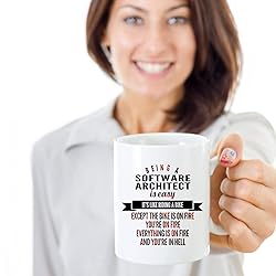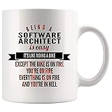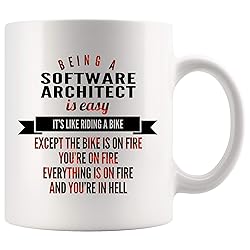 Software Architect COFFEE MUG - The quote on the mug reads: Being A Software Architect Is Easy Like Riding A Bike Except The Bike Is On Fire You're On Fire And In Hell THE PERFECT GIFT - A cool and unique gift on a budget. Your mom, dad, wife, girlfriend, boyfriend, friend, work colleague or neighbor are going to LOVE this ceramic coffee mugs! Perfect for any occasion: Birthday, Christmas, Party, Thanksgiving. Buy Now! PRINTED IN THE USA! - This coffee cup is proudly printed right here in the USA! 100% Customer Satisfaction Guarantee. Shop with Absolute & Complete Confidence that you're making a very smart decision! Buy Now! THE COFFEE MUG - The Coffee and Motivation Mug can be used for coffee, tea, hot chocolate, soup, juice, beer, wine, whiskey or any liquid of your choice. It can also be used as a pen or pencil holder. It's specially designed with a large handle to provide you with a comfortable grip while preventing you from burning your hand. HIGH QUALITY - This high quality ceramic mug has a premium hard coat that provides crisp and vibrant color reproduction sure to last for years. The imprinted design is printed on both sides. It's dishwasher and microwave safe. Perfect for all hot & cold beverages. Treat yourself with this awesome coffee cup and buy more to make someone special very happy.