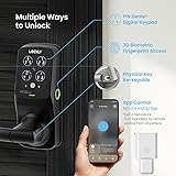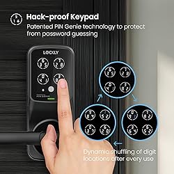 - Compatible with most standard doors 1.38 in. to 2 in. thick - universal fitment with both right-swing and left-swing doors and installs with standard tools in 10-minutes to 15-minutes. Highly secure keypad worlds first patented peek-proof keypad, displays an always shuffling set of numbers across 4 buttons and is different every time, so while your access code remains the same, the location of the numbers differs, making it near impossible for prying eyes to guess the correct code/ Convenient keyless entry lock/unlock and manage your door access with your iOS/Android smart phone or by entering a preset access code on the digital keypad, backup physical keys and backup power options included in case of emergencies. Advanced 3D fingerprint sensor - store up to 99 fingerprints and detects physical fingers only, preventing the use of copied or lifted fingerprints. Zinc alloy built lock with a rust and corrosion resistant matte black finish backed by a lifetime finish warranty. Auto lock feature - custom auto lock feature can be set to automatically lock your phone 5-seconds up to 5-minutes after unlocking, making sure your deadbolt is always secured. Long-lasting power: powered by 4 AA batteries (included), the Lockly secure smart lock lasts up to 1-year on normal use, low battery warning can be viewed on your app, all mounting hardware included. Limited 5-year mechanical and finish warranty and 2-year electronics warranty.