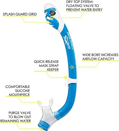 - The Snorkel features a splash guard designed to prevent splashed surface water from entering inside the snorkel barrel. Practical low purge valve to easy blow out residual water. Easy-to-use snorkel keeper for attachment to the mask. Silicone mouthpiece.